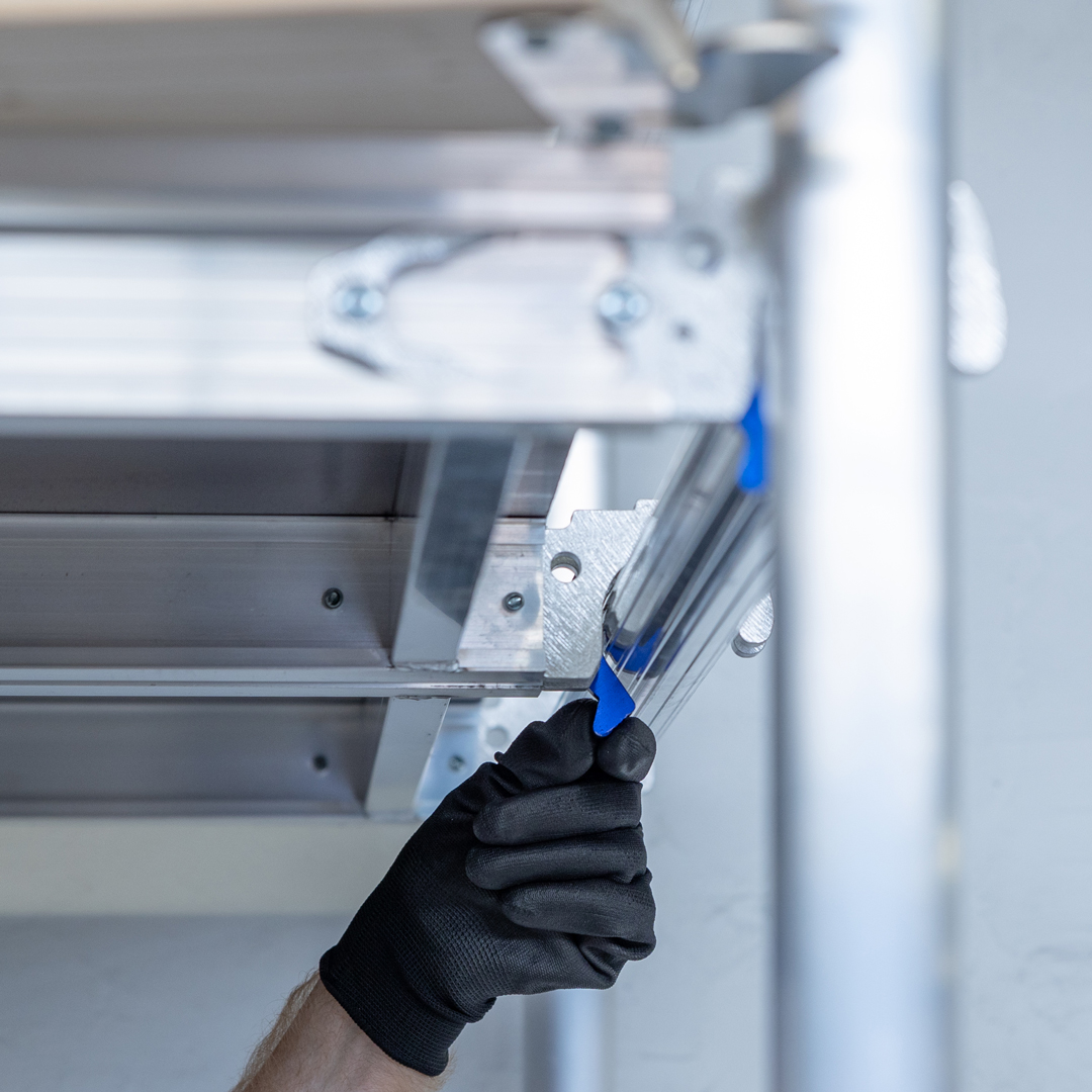 Deze aluminium rolsteiger is voorzien van voorloopleuningen op elke etage en biedt een stabiele werkomgeving voor al uw klussen rond huis en tuin.