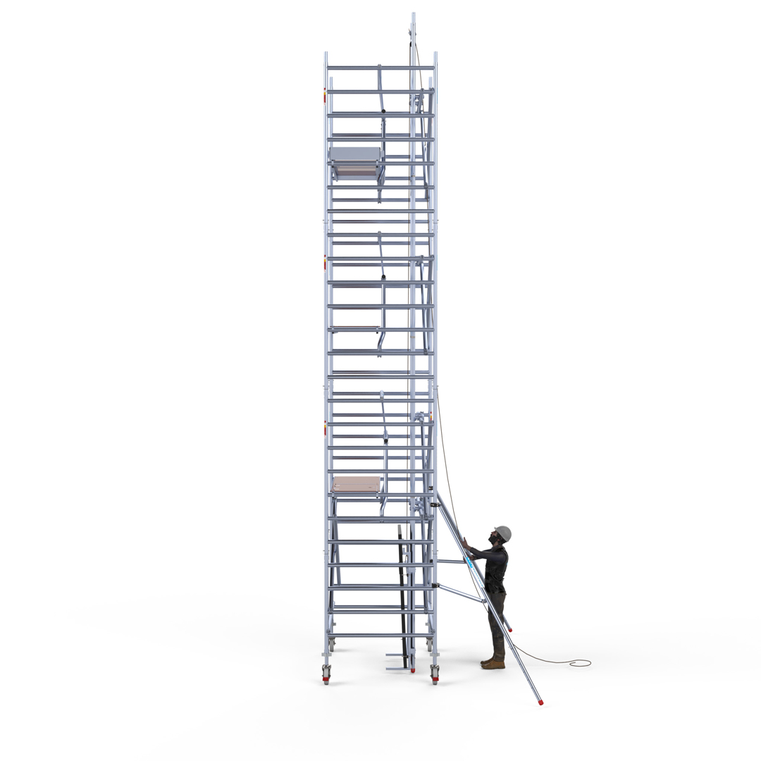 De Euroscaffold solarlift met rolsteiger is speciaal ontwikkeld voor het eenvoudig en veilig omhoog takelen van zonnepanelen. Deze innovatieve rolsteiger met geïntegreerde takelinstallatie maakt het plaatsen van PV-panelen op daken efficiënter en volledig ARBO verantwoord.